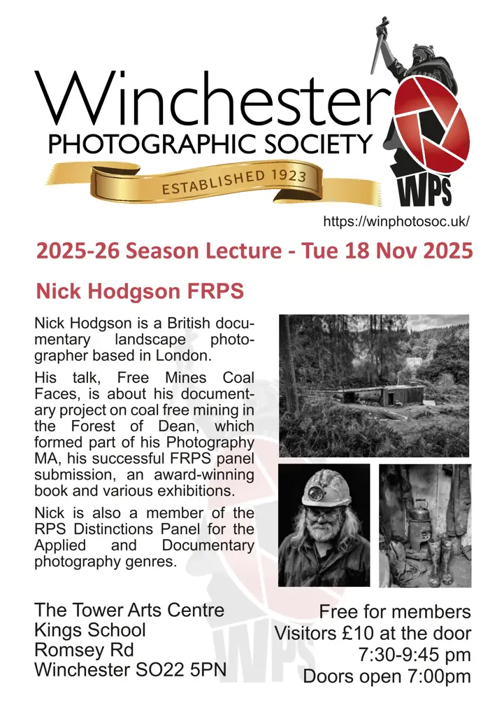Nick Hodgson FRPS is a British documentary landscape photographer based in London. His talk, Free Mines Coal Faces, is about his documentary project on coal free mining in the Forest of Dean, which formed part of his Photography MA, his successful FRPS panel submission, an award-winning book and various exhibitions. Nick is also a member of the RPS Distinctions Panel for the Applied and Documentary photography genres.